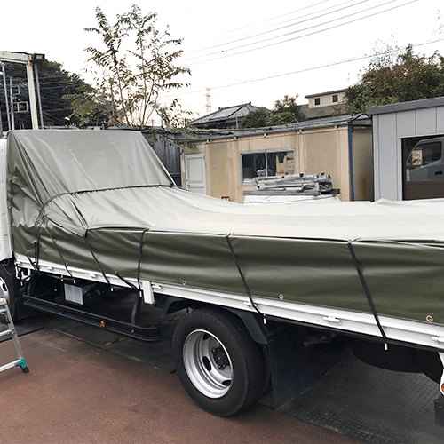 埼玉県川越市のエステル帆布製トラックシートの施工・製作事例