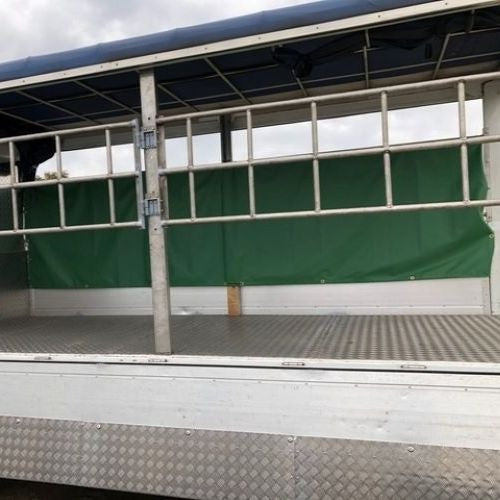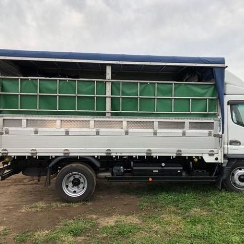 エステル帆の生地を使用し大型トラックの荷台に取付けるアオリシートを製作いたしました。 エステル帆布は軽トラックから大型トラックまで使用でき、耐久性とコストパフォーマンスに優れているため、幅広くお使いいただける生地です。 防水性・撥水性・耐候性を兼ねそろえた国産素材でもあり、雨よけ対策や飛散防止の用途でもっとも普及している人気の商品となります。