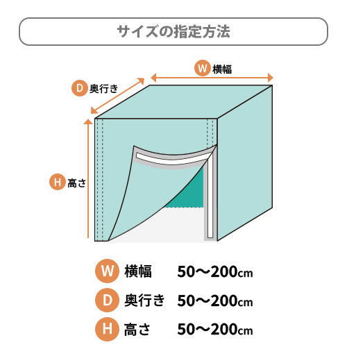 標準仕様は、箱型5面体で全面にマジックテープが付いています。カバー内の荷物を取り出しやすく、パレットカバーやラックカバーに人気の仕様です。横幅(W)×奥行き(D)×高さ(H)のサイズをご指定いただけます。