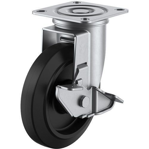 ユーエイ プレート式 自在 ステンレスキャスター ゴム 車輪径150mm ストッパー付き Jタイプ SUS-J2-S型 取付寸法80×80(75×75)