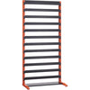 ●間口(mm):900●奥行(mm):430●高さ(mm):1885●最大積載量(kg/台):80●棚段数(段):12●色:ブラック(棚板・底板・上桟)、オレンジ(支柱・ベース)