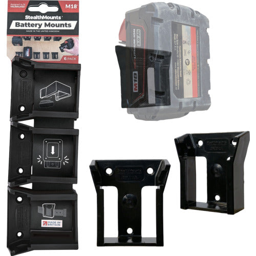 ステルスマウント バッテリーマウントミルウォーキーM18用(6個入り)ブラック