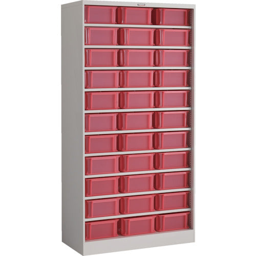 ●間口(mm):900●奥行(mm):450●高さ(mm):1790●最大積載量(kg/台):300●均等積載量(kg/段):70●色:ネオグレー●コンテナ色:透明レッド●付属品:棚板10枚