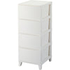 ●引出し数:4●色:ホワイト●間口(mm):340●奥行(mm):420●高さ(mm):875●引出し内寸(mm)間口:260●引出し内寸(mm)奥行:362●引出し内寸(mm)高さ:165●引出し色:ホワイト●容量(L):1段あたり:15.5●引出し内寸(mm)間口×奥行×高さ:260×362×165