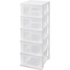 ●引出し数:5●色:ホワイト/クリア●間口(mm):309●奥行(mm):380●高さ(mm):963●引出し内寸(mm)間口:233●引出し内寸(mm)奥行:328●引出し内寸(mm)高さ:158●天板色:ホワイト●耐荷重(kg):天板2kg、引き出し1段あたり4●引出し耐荷重(kg):4