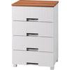 - ●本体・引き出し・ロック・ローラー・脚:ポリプロピレン(PP)●すべり止め:ポリエチレン(PE)●前パネル:スチロール樹脂●天板:MDF化粧板