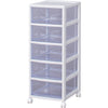 ●引き出しの材質にスチロールを採用しているため透明度が高く、中身が確認しやすいクリアタイプのチェストです。●引き出しは飛び出しにくい、簡易ロック構造です。●移動に便利なキャスター付です