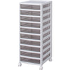 ●引出し数:10●色:ホワイト/クリアブラウン●間口(mm):320●奥行(mm):390●高さ(mm):832●引出し内寸(mm)間口:260●引出し内寸(mm)奥行:360●引出し内寸(mm)高さ:55●引出し色:クリアブラウン●引出し耐荷重(kg):2●キャスター:あり●引出し内寸(mm)間口×奥行×高さ:260×360×55●耐荷重(kg/段):2