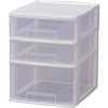 ●引出し数:浅型2+深型1●色:ホワイト●間口(mm):252●奥行(mm):322●高さ(mm):324●引出し色:クリア●キャスター:ー●サイズ:A4●引出し内寸(mm)間口×奥行×高さ:浅型 217×298×70 深型 216×297×130
