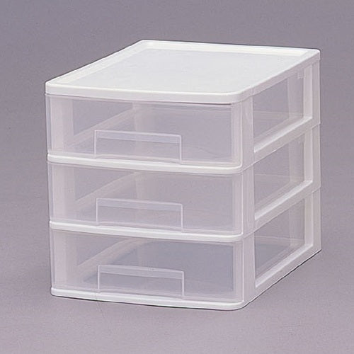 ●引出し数:浅型3●色:ホワイト●間口(mm):252●奥行(mm):322●高さ(mm):265●引出し内寸(mm)間口:217●引出し内寸(mm)奥行:298●引出し内寸(mm)高さ:70●引出し色:クリア●キャスター:ー●引出し内寸(mm)間口×奥行×高さ:217×298×70