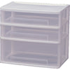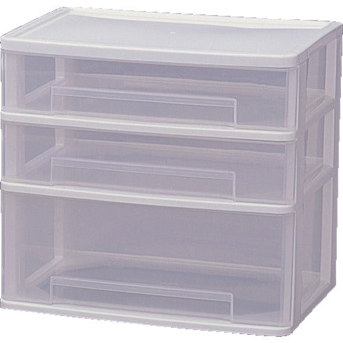 ●引出し数:浅型2+深型1●色:ホワイト/クリア●間口(mm):355●奥行(mm):255●高さ(mm):327●引出し色:クリア●キャスター:ー●引出し内寸(mm)間口×奥行×高さ:浅型 315×228×68 深型 315×228×128