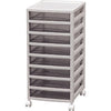 ●引出し数:8●色:ライトグレー●間口(mm):320●奥行(mm):390●高さ(mm):681●引出し内寸(mm)間口:260●引出し内寸(mm)奥行:365●引出し内寸(mm)高さ:55●引出し色:クリア●引出し耐荷重(kg):1段あたり2●キャスター:あり