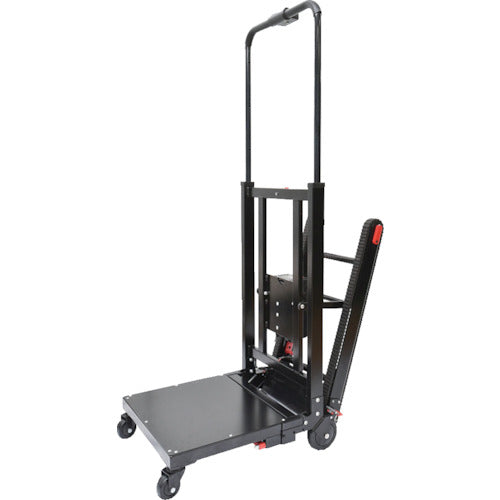 ●階段での荷物運搬が楽に行える電動階段のぼれる台車です。●荷台部分が折りたためるので、使わない時はコンパクトに片付けることが可能です。●最大150kgまでの荷物が運べます。●3段階のスピード調整、4段階のハンドルの長さ調整ができます。●台車の背面にある走行ベルトは、キャタピラのような凸凹と滑りにくいゴムで、階段の段差でも昇り降りすることを可能にします。●使用するときは、走行ベルトを倒して角度をつけて、階段に走行ベルト全体が接するように倒しながら進みます。●階段台車の操作は手元のボタンで行います。●ボタンを押している間のみ動き、手を離せば停止するので安全に走行することができます。●またLEDライトがついていて、暗い倉庫などでも足元を照らします。