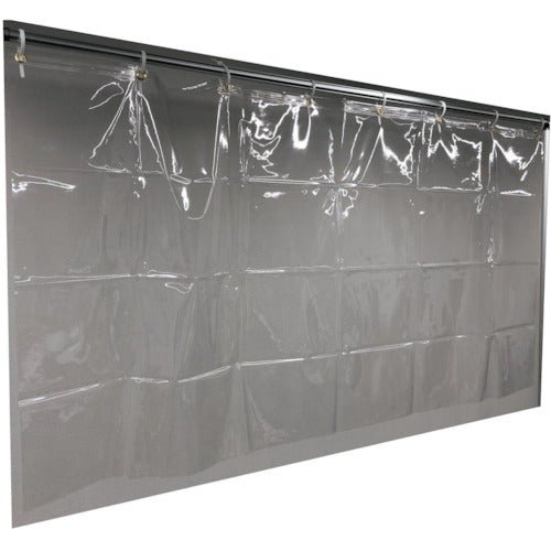 ●幅(mm):2050●長さ(m):1●厚さ(mm):0.3●色:透明●タイプ:防炎●上部ハトメ数(個):8●ハトメピッチ(mm):290●材質:ポリ塩化ビニール