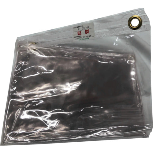 ●防炎認定品●防炎ラベル付き●RoHS2.0対応品●酸素指数27以上●厚み:0.3mm●色:透明●上部折り返し、真鍮ハトメつき●三方は切りっぱなし