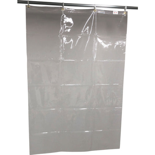 ●幅(mm):1025●長さ(m):1.5●厚さ(mm):0.3●色:透明●タイプ:防炎●上部ハトメ数(個):4●ハトメピッチ(mm):330●材質:ポリ塩化ビニール