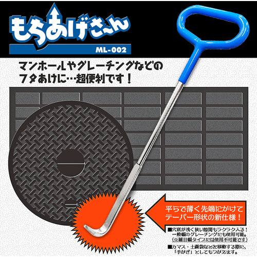 ●フック部は平たく薄く仕上げてありますので穴底の浅い穴にもスムーズに入り込みます。●ソフトグリップ仕様で手にやさしい仕上げにしています。●コンパクトサイズなので、コンテナや土嚢袋を移動する際の手カギとしても使用可能です。●隙間間隔の広い一般幅のグレーチングにも仕様が可能です。●平たい薄型仕上げ先端フックです。