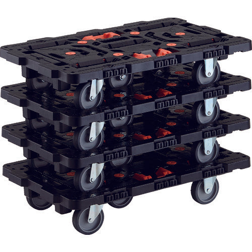 TRUSCO まとめ買い 連結式樹脂製平台車 ビートル 700X450 自在3輪 とめたろう付4台セット