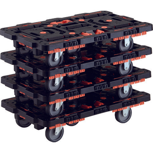 TRUSCO まとめ買い 連結式樹脂製平台車 ビートル 700X450 自在3輪 コボレ止めセット とめたろう付 4台セット