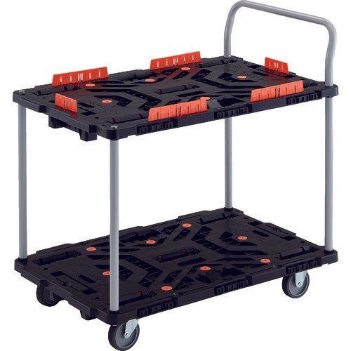 TRUSCO 連結式樹脂製2段台車 ビートル 900X600 自在3輪 コボレ止めセット ハンドル付