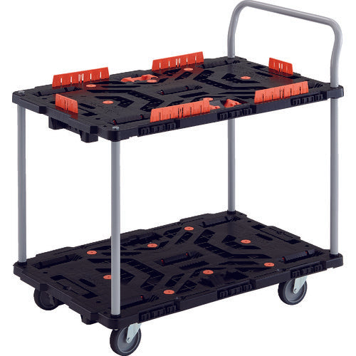 TRUSCO 連結式樹脂製2段台車 ビートル 900X600 自在5輪 コボレ止めセット とめたろう ハンドル付