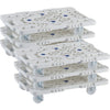 ●6台セットのお買い得品です。●メッシュ構造の採用で、従来品よりさらに軽量で移動が簡単です。●縦・横方向に連結が可能です。(縦連結はオール自在キャスター仕様、オール自在ストッパー付キャスター仕様のみ)●スタッキング可能です。●荷台は堅牢なメッシュリブ構造です。●薬品や溶剤にも侵されにくく耐久性に優れています。●台上に滑り止め用ゴムが4ヵ所ついています。●ナイロン車輪 ●ルートバンMP-600用コーナーストッパーの取り付けが可能です。(MPK-600シリーズ)