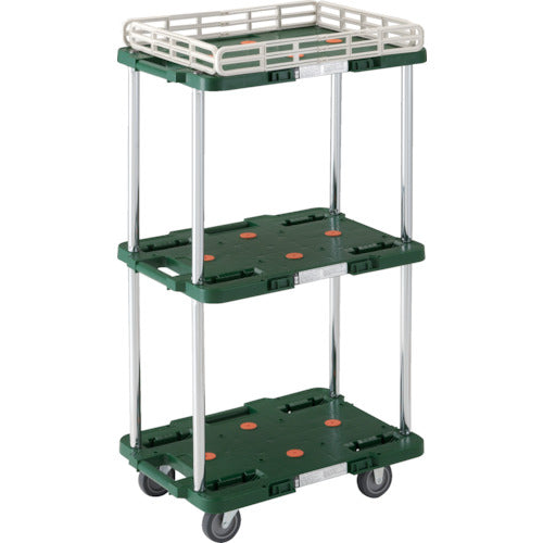 TRUSCO 樹脂製台車 ルートバン 3段式 こぼれ止め1段付 370X500 緑