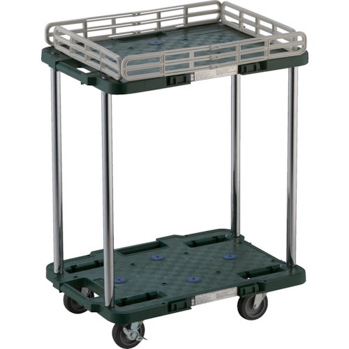TRUSCO 樹脂製台車 ルートバン 2段式 柵1段付 370X500 4輪自在ストッパー付 緑