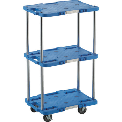 TRUSCO 樹脂製台車 ルートバン 3段式 370X500 4輪自在ストッパー付 青
