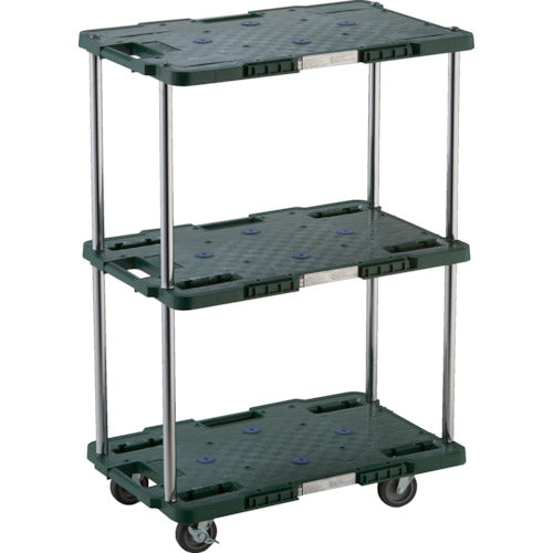 TRUSCO 樹脂製台車 ルートバン 3段式 400X600 4輪自在ストッパー付 緑