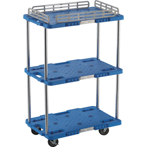 TRUSCO 樹脂製台車 ルートバン 3段式 柵1段付 400X600 4輪自在ストッパー付 青