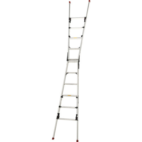 ●前脚・後脚の長さが違い、極度の段差や階段に適した脚立です。●かがまずに伸縮脚を操作できる上部操作式です。●アルマイト加工(支柱のみ)により耐食性が高く、汚れに強くなりました。●極度の段差や階段に適した上部操作式階段用です。