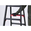 ●両脚、片脚伸縮が可能な上部操作レバーを搭載。●レバーを握るだけで簡単に脚部を伸縮することができます。●脚が4本とも伸縮するので凹凸のある場所でも水平キープします。●天板はビスや工具などが置ける便利なトレー形状になっています。●踏ざん踏面幅が60mmと広く、昇降し易く疲れ難くなっています。●別売りオプションの自在式脚端具も用意しております。●ワンタッチバーを持ち上げると開き止めが解除され、片手で簡単に閉じることが可能です。