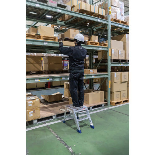●折りたたみ式、省収納スペースタイプのアルミ製踏台です。●昇降角度が緩やかになり、さらに昇りやすい仕様になっています。