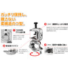 ●独自のコ型形状で建築現場の振動を吸収します。●単管クランプ部は独自のナット抜け防止機構です。