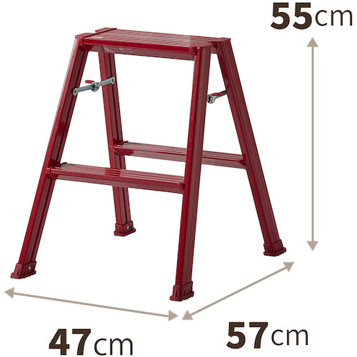 ●最大使用質量(kg):100●天板高さ(m):0.55●天板寸法(mm):285×170●段数(段):2●踏ざん踏面幅(mm):78●収納時寸法(mm)全長:620●収納時寸法(mm)幅:470●収納時寸法(mm)厚さ:170●色:レッド●本体サイズ(mm):470×570×550●SGマーク:認定