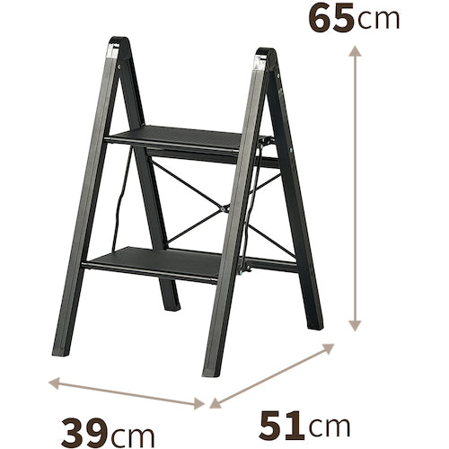●最大使用質量(kg):100●天板高さ(m):0.65●天板寸法(mm):300×181●段数(段):2●踏ざん踏面幅(mm):181●収納時寸法(mm)全長:700●収納時寸法(mm)幅:390●収納時寸法(mm)厚さ:50●色:ブラック●本体サイズ(mm):390×510×650●SGマーク:認定