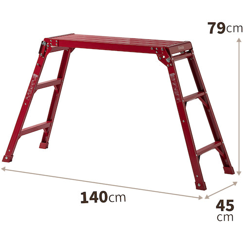 ●最大使用質量(kg):100●天板高さ(m):0.79●天板寸法(mm):785×300●収納時寸法(mm)全長:890●収納時寸法(mm)幅:450●収納時寸法(mm)厚さ:140●踏ざん踏面幅(mm):38●SGマーク:認定●色:レッド●段数(段):3●本体サイズ(mm):1400×450×790