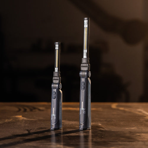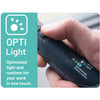 ●バッテリーは1000回充電後も80%以上の容量確保が可能です。●一般的なLEDライトの2倍以上の製品寿命です。●コンパクトな折りたたみ式ハンドライトです。●先端部は9mmの薄型設計で狭所を照らすのに便利です。●底部にマグネットとフックを内蔵しています。●折り畳んで懐中電灯のように使用することも出来ます。●OPTILightボタンを押すとワンタッチで一般的作業に必要な明るさが出力されます。●バッテリーインジケーター付きでバッテリー残量が可視化できます。●リサイクル原料を18%使用しています。