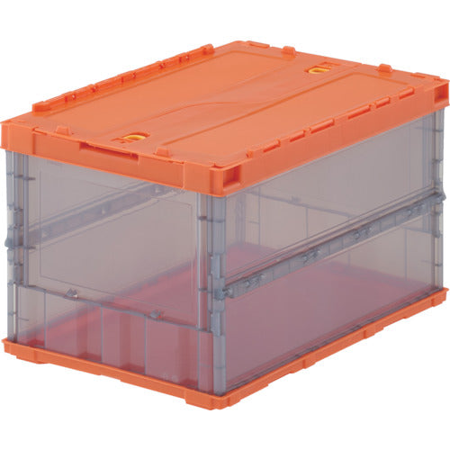 TRUSCO オリコン 薄型折りたたみコンテナ スケルコン 50L ロックフタ付 オレンジ/透明ブラック オレンジツートン