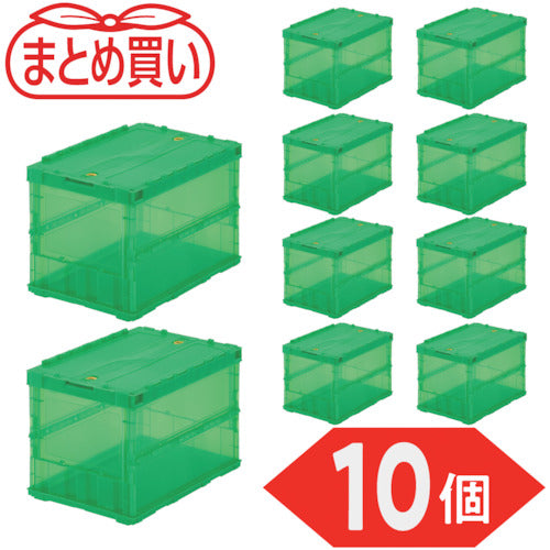 TRUSCO 【まとめ買い】オリコン 薄型折りたたみコンテナ スケルコン 50L ロックフタ付 透明グリーン 10個