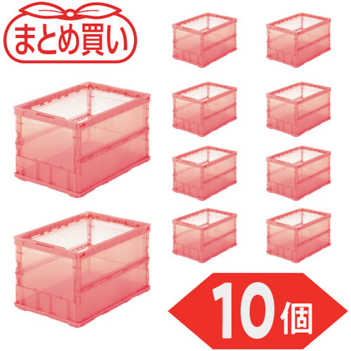 TRUSCO 【まとめ買い】オリコン 薄型折りたたみコンテナ スケルコン 50L 透明レッド 10個