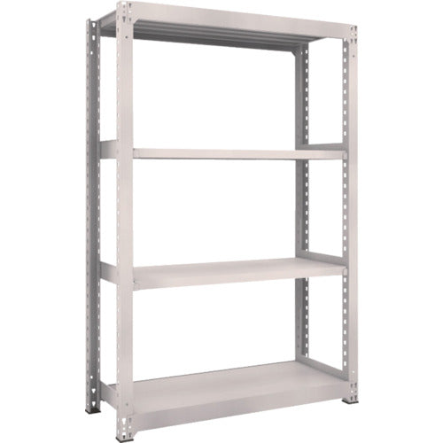 ●間口(mm):1261●奥行(mm):481●高さ(mm):1811●有効間口(mm):1140●色:ネオグレー●棚段数(段):4●均等積載量(kg/段):500●最大積載量(kg/台):2500●棚板調整ピッチ(mm):25●タイプ:単体型●組立目安:2人30分