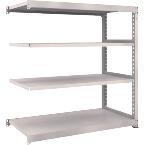 ●間口(mm):1500●奥行(mm):731●高さ(mm):1511●有効間口(mm):1440●色:ネオグレー●棚段数(段):4●均等積載量(kg/段):500●最大積載量(kg/台):2500●棚板調整ピッチ(mm):25●タイプ:連結型●組立目安:2人30分