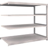 ●間口(mm):1800●奥行(mm):931●高さ(mm):1511●有効間口(mm):1740●色:ネオグレー●棚段数(段):4●均等積載量(kg/段):500●最大積載量(kg/台):2500●棚板調整ピッチ(mm):25●タイプ:連結型●組立目安:2人30分