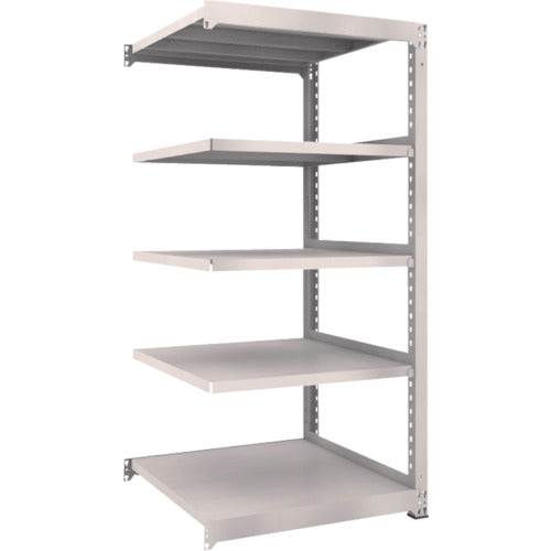●間口(mm):900●奥行(mm):931●高さ(mm):1811●有効間口(mm):840●色:ネオグレー●棚段数(段):5●均等積載量(kg/段):500●最大積載量(kg/台):2500●棚板調整ピッチ(mm):25●タイプ:連結型●組立目安:2人30分