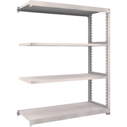 ●間口(mm):1500●奥行(mm):581●高さ(mm):1811●有効間口(mm):1440●色:ネオグレー●棚段数(段):4●均等積載量(kg/段):500●最大積載量(kg/台):2500●棚板調整ピッチ(mm):25●タイプ:連結型●組立目安:2人30分