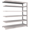 ●間口(mm):1800●奥行(mm):581●高さ(mm):1811●有効間口(mm):1740●色:ネオグレー●棚段数(段):6●均等積載量(kg/段):500●最大積載量(kg/台):2500●棚板調整ピッチ(mm):25●タイプ:連結型●組立目安:2人30分