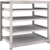 ●ボルトを1本も使用していないボルトレス構造で、分解・組み立て作業が簡単で、作業時間を大幅に短縮できます。●棚の段変更が、25mmピッチで、自由に調整、変更ができます。●高さ、奥行が同じであれば、増結することができます。また、支柱を兼用することにより、コストダウンが図れます。●優れた断面構造で、荷重、横からのねじれにも強いC型形状の支柱を採用しています。●樹脂ベースの使用により、床を傷つけません。