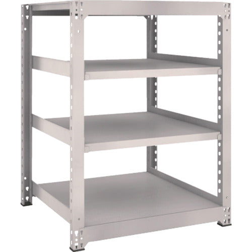 ●間口(mm):961●奥行(mm):931●高さ(mm):1211●有効間口(mm):840●色:ネオグレー●棚段数(段):4●均等積載量(kg/段):500●最大積載量(kg/台):2500●棚板調整ピッチ(mm):25●タイプ:単体型●組立目安:2人30分